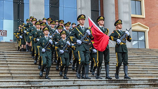 公司2019级本科生周晟参加必一运动体育公司国旗护卫队(第二排左1)