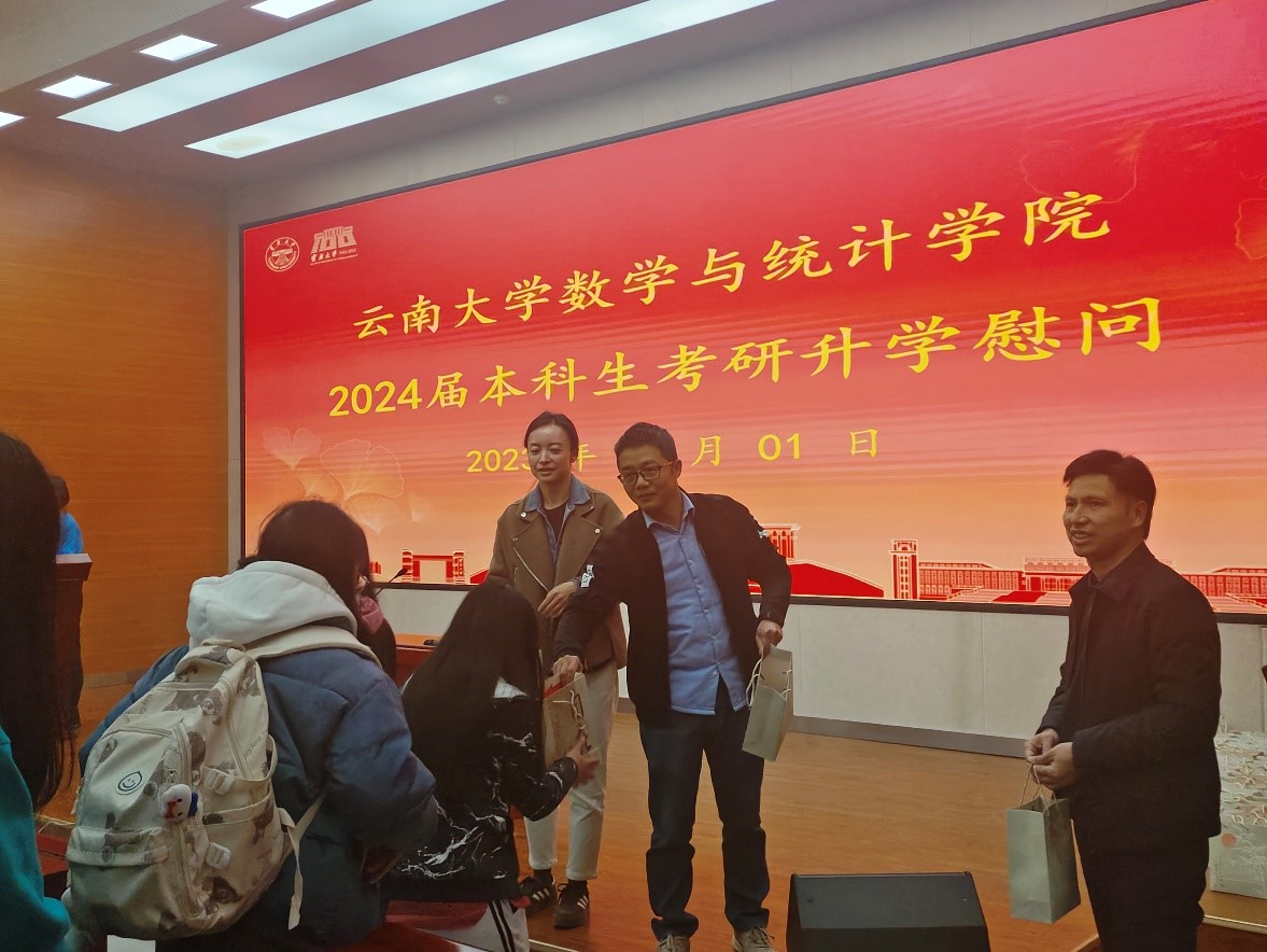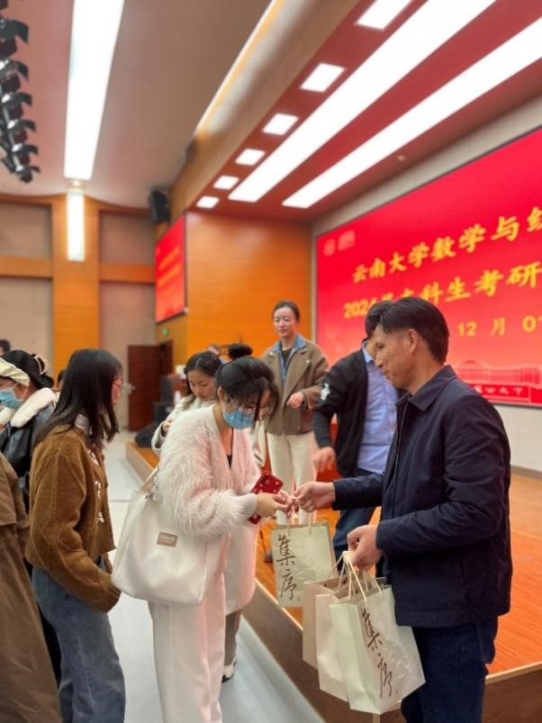 临近活动尾声,公司党委副书记杜芳芳老师、本科生2020级信息与计算科学专业班主任张根根老师、本科生2020级数理基础科学专业班主任娄本功老师为到活动现场的学子们递上考研升学礼包,传递来自公司的一份冬日的温暖。在发放礼包的同时,各位老师亲切地与同学们交流,为每一位同学加油打气!