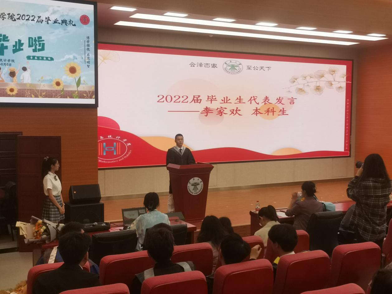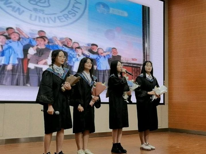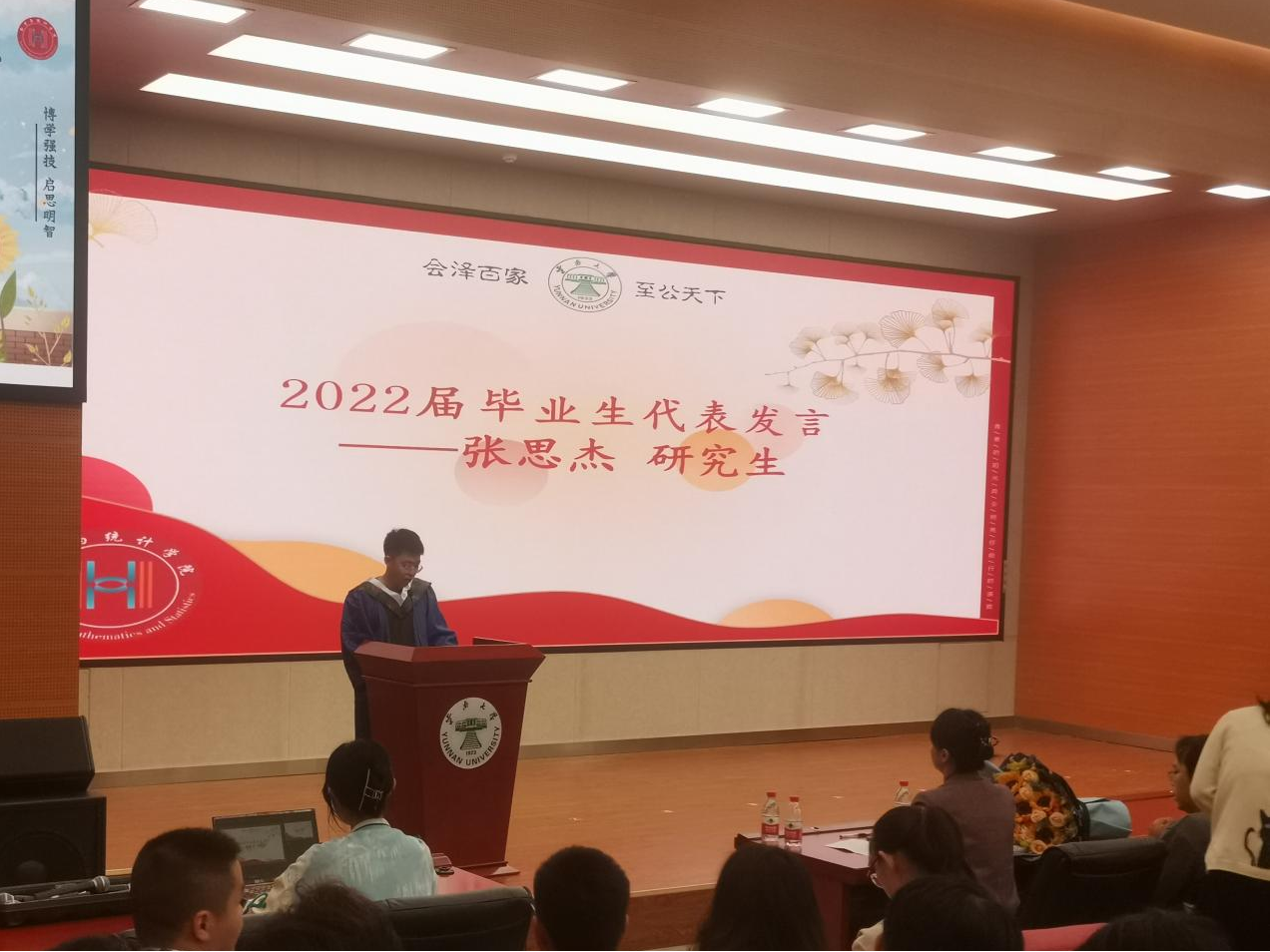 研究生毕业生代表张思杰在发言中回忆了自己在云大的学习生活,向老师和同学们告别,祝愿在场员工在母校的培养教导下踏上人生新的征程。