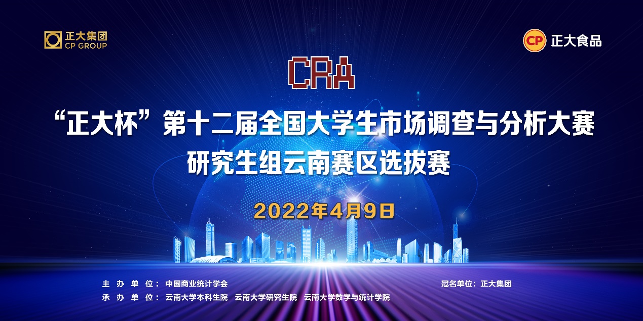 2022年4月9日,“正大杯”第十二届全国老员工市场调查与分析大赛研究生组云南赛区选拔赛在线上举行。此次比赛由中国商业统计学会主办,必一运动承办。本届赛事云南省共有8家院校参加,报名258人,参加省赛队伍46支,是研究生组第一次举行省赛区比赛。