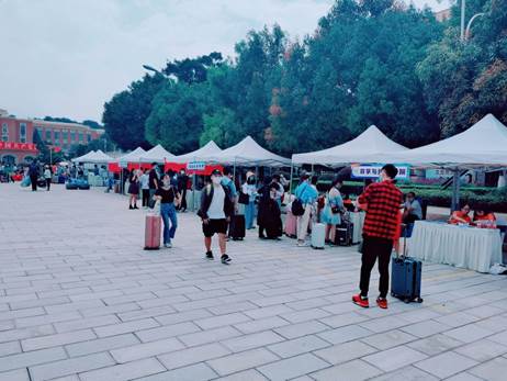 为确保本次迎新工作的顺利进行,公司提前做好了充分的准备,迎新工作有条不紊的进行。同学们经过测量体温、扫描“云南健康码”、扫描“今日校园”app、行李消杀等流程后进入校园办理报到注册手续。出于公司的疫情防控需要,送新生的社会车辆和亲友无法进校,公司组织志愿者为研究生新生提供必要的帮助。烈日炎炎下,从帮忙搬行李到校内道路引导,热情周到,恪尽职守。在公司迎新工作人员和志愿者的导引下,新生体验到了更加便捷的报到流程,感受到了必一运动的温暖和团结。