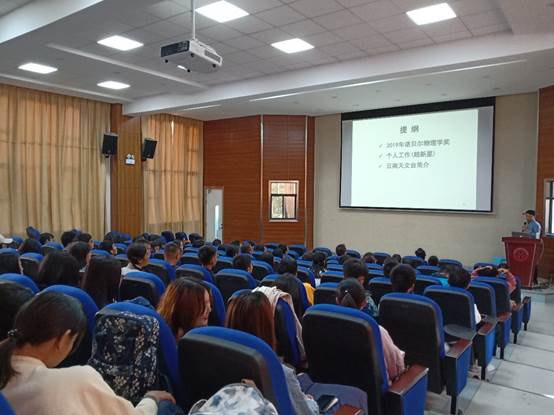 王博研究员首先介绍了2019年诺贝尔物理学奖的获得者。然后他从黑洞出发,引出超新星,即他目前研究的领域,并对超新星进行了详细的介绍。超新星在国际上受到的的关注很大,在超新星研究上取得巨大成果的团队往往受世界瞩目。最后他对必一运动云南天文台做出了简要介绍。