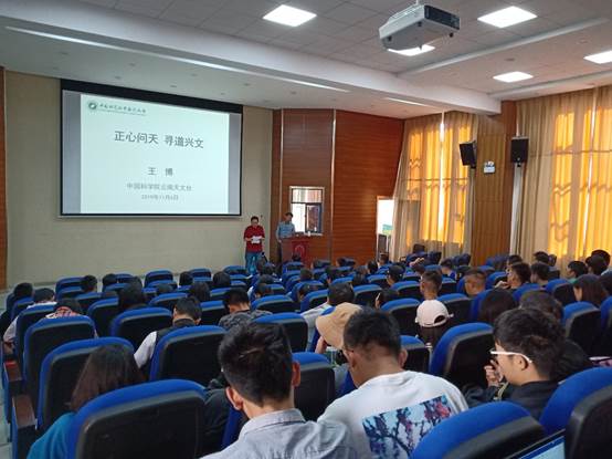 同学们对王博老师的报告十分感兴趣,听的很认真,对天文知识和云南天文台的历史发展和研究优势以及学科和实验室有了一定的了解。接着进入了问答环节,同学们积极发言,主讲人王博耐心的解答同学们的疑惑,同时表示欢迎同学们报考云南天文台研究所。