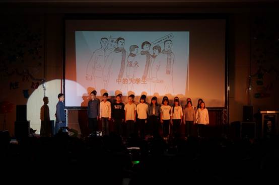 接下来的是由2017级信息与计算科学专业和数学与应用数学专业员工们合作演出的话剧《战火中的老员工》,开场音乐一响起便把观众带入历史的长河中,激昂的合唱让现场观众激动万分。而独舞《凉凉》及葫芦丝演奏《竹林深处》则凭借幽静深邃的曲调,和惟妙惟肖的孔雀舞使观众们身临其境,感受到云南省特有的文化底蕴。此外,2017级统计学专业带来的诗歌朗诵《致青春,致梦想,致奋斗》及文艺部的舞蹈《荷尔蒙战争》、《采薇》,一动一静中反映出当代老员工的心声。