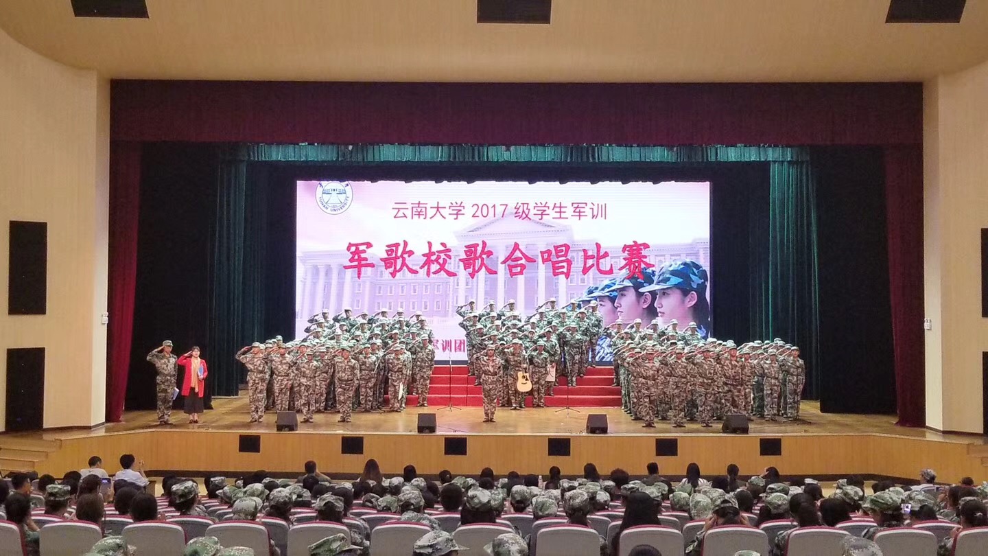 太阳刚刚落山,美丽的晚霞映入眼帘,发出最后一道耀眼的光芒,把整个天空染得红彤彤的。就在此时,嘹亮的军歌已经响起,9月7日19时,2017级新生军歌校歌合唱比赛在公司呈贡校区员工会堂隆重举行。公司员工处武装部各位领导和老师2017级新生军训教官等莅临现场观看了比赛,辅导员老师们担当此次比赛的评委。