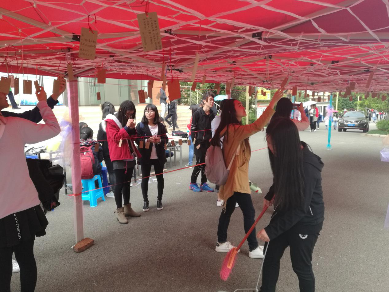 活动一开始就吸引了很多同学,同学们纷纷来到许愿长廊下参与活动。女生们都写下自己的小小心愿,并希望有人能够帮助他们梦想成真。而男生们则长廊下寻找自己可以实现的愿望,由于此活动趣味性十足,很多同学都纷纷参与了进来,因此,长廊下很快就挂满了女生的心愿卡片。这个活动也从另一个角度映射出女生节的活动初衷,为每个女生提供一个美梦成真的平台。