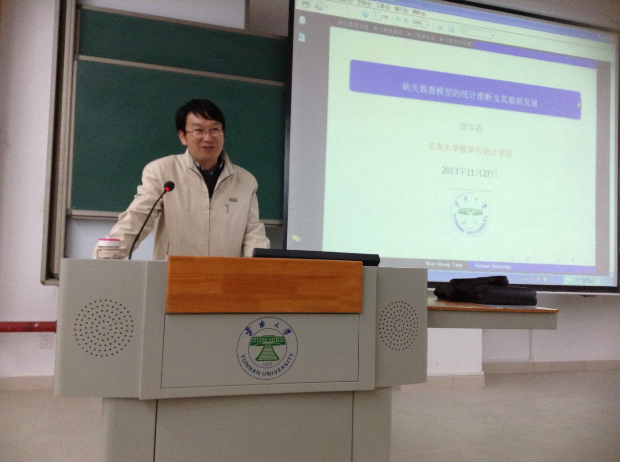 2013年11月27日,必一运动唐年胜老师在必一运动体育公司呈贡校区力行楼4107教室为必一运动研究院研一新生作了主题为“缺失数据模型的统计推断及其最新发展”的学术报告。此次报告会的参与者是必一运动研究院全体研一新生,并由赵慧老师主持。
