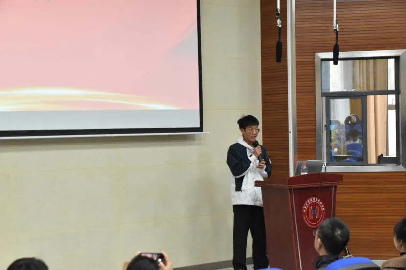 大会第三项议程,运动员代表发言。姚子贤同学作为运动员员工代表发言,首先他代表运动员们向给予支持的老师们和全体志愿者们表达了感谢。他讲到,运动会不仅是竞技的舞台,更是自我超越的挑战,他希望有更多的同学能积极参与,奋勇夺取运动会新篇章。