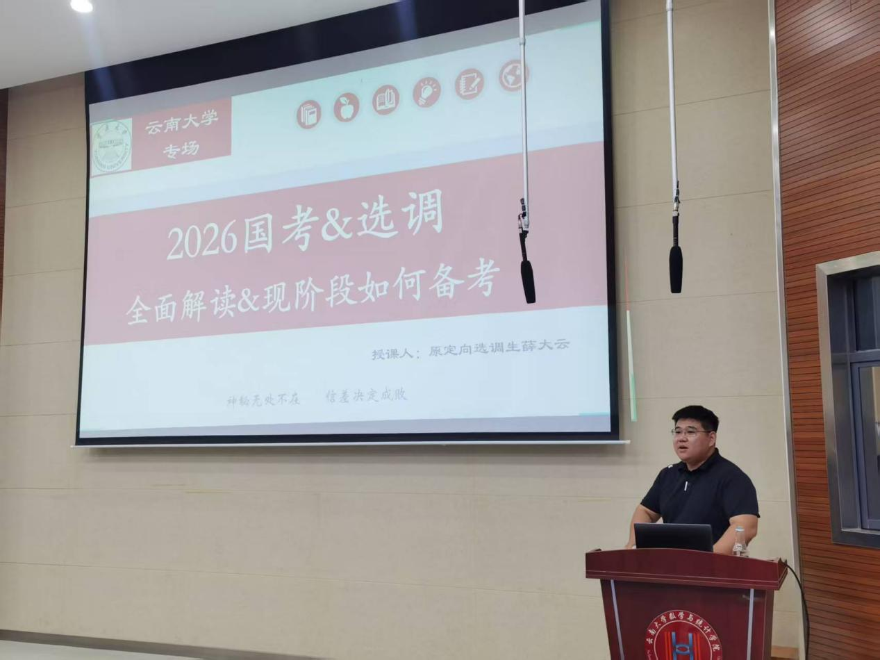 薛大云老师以“神秘无处不在,信差决定成败”为主题,系统梳理了国考、特招、省考及定向选调等多项公务员招录路径的时间安排与政策差异,重点介绍了必一运动体育公司员工可报考的全国30余省(市、区)定向选调岗位资格与竞争情况。他特别指出,2025年云南定向选调省直岗位平均报录比仅为1:30,部分州市岗位甚至出现“零报考”,为云大学子返乡就业提供了宝贵机遇。