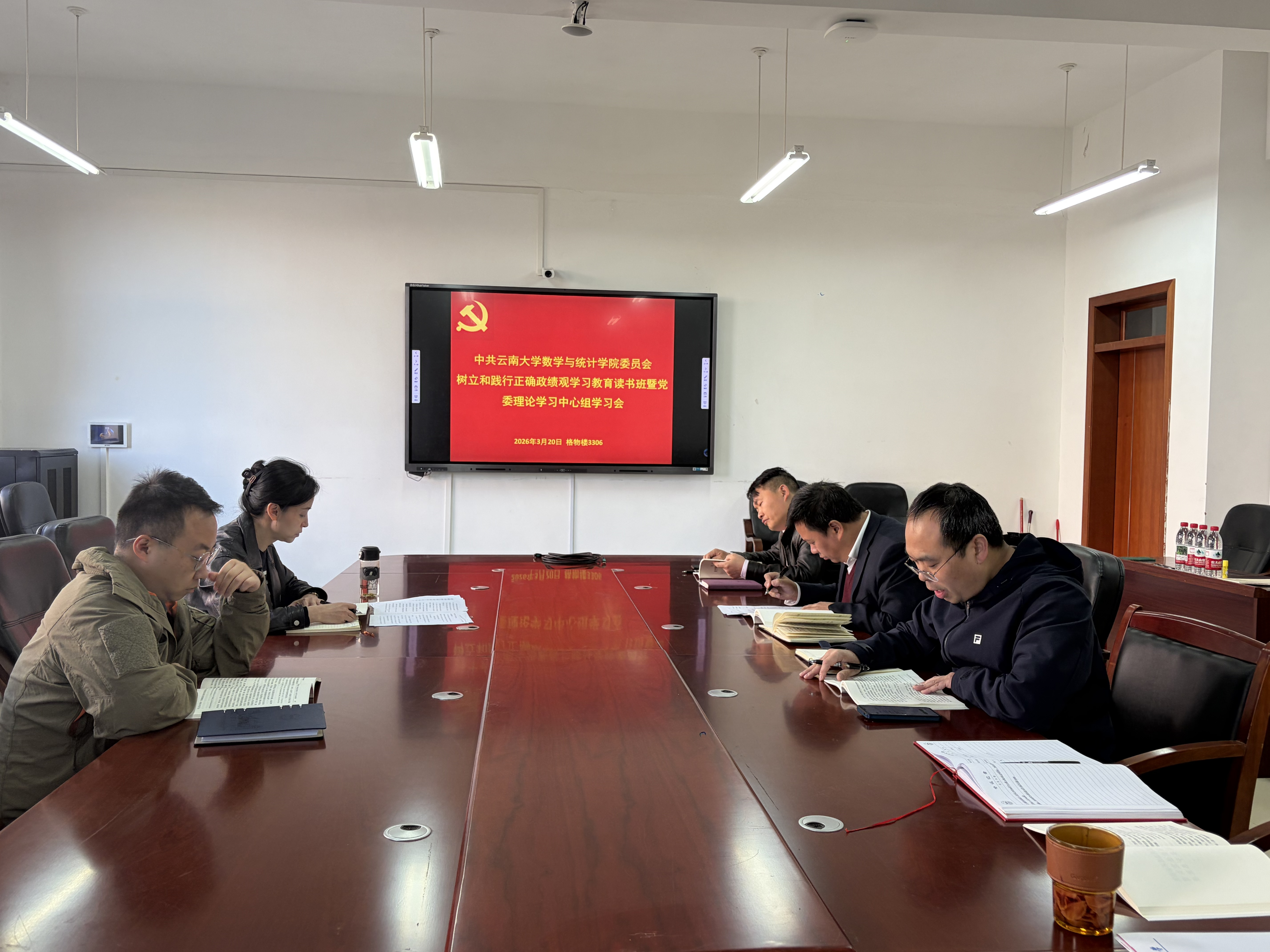 2026 年 3 月 20 日,数学与统计公司党委举办树立和践行正确政绩观学习教育读书班暨党委理论学习中心组学习会。公司党委班子成员参加会议,会议由公司党委书记杜芳芳主持。